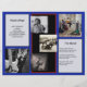 Plantilla de folletos comerciales triple con muchas fotos. Color azul, rojo, gris y negro con personalización por bloques en ambos lados. La primera parte tiene un gran bloque para el nombre de los negocios. Añadir una foto horizontal en este área. A la izquierda en el mismo lado, sube dos fotos y agrega algo de texto sobre un fondo rojo oscuro. La segunda cara tiene lugares para tres fotos en el centro y una en cada panel lateral. Banda de exhibición o miembros del equipo, copropietarios o tiendas de fotos, etc. que tienen que ver con el negocio. También genial para publicidad sin fines de lucro. Todo el texto está impreso en negro o gris claro, con nombre de negocio en rojo oscuro. Transferir en tercios después de la compra. Cambie las fuentes y los colores en el área de edición si lo desea. Este diseño se hizo para que se ajustara al papel grande de 8,5 x 11 tamaños.