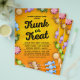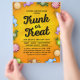 Promueve tu evento de Halloween Trunk o Treat con este divertido volante con un colorido marco de borde de caramelo, un fondo degradado de gradiente naranja amarillo y una tipografía escarpada negra. Personalizar la plantilla a tu gusto.