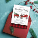 El folleto de la invitación al partido de los Navidades Red Buffalo Plaid del país del presupuesto - la invitación al presupuesto incluye un tractor de una casa de campo roja que lleva un árbol de Navidad siempre verde y un regalo de los Navidades con un acento de manto de búfalo. Nuestra plantilla de alta calidad le facilita mucho el personalizar de la invitación de su grupo de Navidades. En la parte posterior de la invitación se muestra un patrón de chapa de búfalo. La invitación al presupuesto forma parte de una colección. Diseñado por Beverly Bainbridge Magnolia & Thistle E: bev@magnoliaandthistle.design
