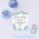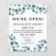 Folleto de Negocio Abierto Seguro COVID con hojas de eucalipto dibujadas a mano y tipografía negra moderna. Fácil de personalizar con la información de tu negocio utilizando los campos de plantilla proporcionados.