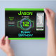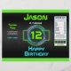 [CUALQUIER EDAD. TODO el texto es EDITABLE] Tema: Bolsa de empaquetado de la fiesta de cumpleaños. Ocasiones: Videojuego En Fiesta, Brillo En El Fiesta Oscuro, Fiesta De Etiquetas Láser. Estilo: Ciber, Guay. Colores: Verde, Azul, Negro. Gráficos: Cibergráficos.
