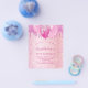 Para una fiesta de cumpleaños femenina. Un fondo de aspecto metálico falso de color rosa claro. Decorado con purpurina falsa y globos. Personalice y agregue un nombre y detalles de la fiesta. El nombre está escrito con un estilo de letra a mano