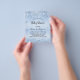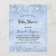 Tenga en cuenta que esta invitación está en papel de volante y es muy delgada. Los sobres no están incluidos. Para invitaciones más gruesas (el mismo diseño) visite nuestra tienda. Para una ducha de bebé, celebrando a un bebé. Un fondo de aspecto metálico falso azul claro. Decorada con polvo falso purpurina. Plantillas para el nombre de la madre y detalles del fiesta. El nombre y el texto: Baby Shower se escriben con un guión de estilo con letras a mano