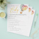 Nombrar la clave de respuesta de la hoja de juego de Baby Shower Baby Song Heart. 1. palabra 2. árbol top 3. estrella 4. sunshine 5. arroyo 6. Hermano John 7. lana 8. agua spout 9. cordero 10. abajo 11. manos 12. cama 13. granja 14. alrededor 15. 16. reloj 17. hombre 18. luna 19. mercado 20. lejos 21. rye 22. hombre 23. weasel 24. roncando 25 pony. 26. pies 27. ovejas 28. Lou 29. zapato 30. Esta noche siga sonriendo a los invitados con este divertido juego de ducha de bebé interactivo! Con un diseño de globo de aire caliente de corazón pastel, esta hoja de juego "Name That Baby Song" reta a los jugadores a llenar los espacios en blanco de canciones de cuna clásicas. Un perfecto rompehielos para tu celebración temática de Little SCariño.