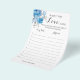 Flyer Nombre que ama la canción Blue Flower Game Card