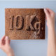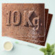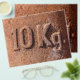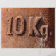 Letrero de peso de 10 kg oxidados. Fotografía.