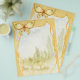 Una magnífica mariposa dorada se sienta en la parte superior de esta página recortada en diseños de oro abstracto con un fondo escénico. Estas páginas son perfectas para 3 Binders.