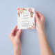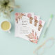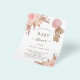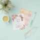 Tenga en cuenta que esta invitación está en papel de volante y es muy delgada. Los sobres no están incluidos. Para invitaciones más gruesas (el mismo diseño) visite nuestra tienda. Para una moderna ducha tipo boho. Fondo blanco en el frente. Decorado con rosa de oro y flores rosadas, rosas, pampas y un chica de oso de peluche sosteniendo un globo rosa. Personalice y agregue un nombre y detalles del fiesta. Atrás: un fondo de color oro rosa, rosa oscuro, rústico falso y metálico.