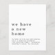 Una excelente alternativa de PAPEL (no cartulina) SIN SOBRES en tamaño PEQUEÑO 4,5” x 5,6” y a un precio económico. (Los sobres estándar A6 son el tamaño más cercano para que quepan). Detalles sencillos de nueva casa. El encabezado es grande en minúsculas elegantes con los detalles debajo. ¡Mucho espacio en blanco en la parte superior para un toque contemporáneo! Personalice fácilmente el texto con sus propios datos.