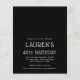 Una invitación de presupuesto de 4,5 x 5,6" para una carta más económica PAPER. Los sobres no están incluidos, ya que la A6 es el tamaño más próximo a caber. Simple Texto Blanco Negro 40 Invitación de la fiesta de cumpleaños. Un diseño de tipografía simple totalmente personalizable con para su cuadragésimo, que puede personalizar fácilmente con sus detalles. Cambie el texto y los colores de fondo si lo desea a través de la opción Editar más.
