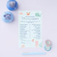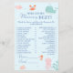 ¡Incluso el pulpo quiere saber el bocadillo favorito de mamá! Esta carta de juegos con temática oceánica "¿Quién conoce mejor a mamá?" está llena de criaturas de mar pastel y un encanto burbujeante. ¡Una manera divertida de hacer que todos se rían y se conectaran antes de que el pequeño haga su ostentoso debut!