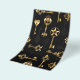 Patrón continuo de llaves antiguas, doradas y en silueta sobre fondo negro.