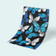 Patrón continuo realista de mariposas azules y blancas sobre fondo negro.