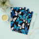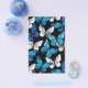 Mariposas realistas, azules y blancas, sin fisuras en el fondo negro.