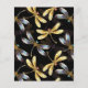 Patrón sin foco con oro, joyas, libélulas brillantes con las detalladas alas brillantes sobre fondo negro. Dragonfly de oro.