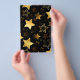 Seamless con Golden Stars sobre fondo negro. Estrella de oro.