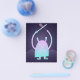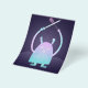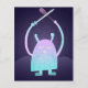 Un pequeño monstruo azul con una espada y un murciélago jugando alrededor del ilustracion