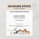 Anuncie sus servicios de paseo de perros u otro negocio relacionado con mascotas con la ayuda de este diseño lindo que presenta la ilustración original de Destei de cinco razas diferentes de perros. Hay un Cavalier King Charles Spaniel blenheim, un Goldendoodle miniatura albaricoque, un bulldog francés cervato, un Labrador Retriever crema inglés y un Dachshund de pelo liso negro y bronceado. Personalice las áreas de texto de muestra con los detalles de su negocio y oferta.
