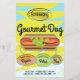 Consiga la atención de sus clientes con este brillante vector ilustrado hot dog gourmet. Reemplace el logotipo y edite el texto al personalizar de su restaurante. Haga clic en "personalizar" para obtener más modificaciones.