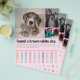El folleto presenta pestañas desmontables en la parte inferior, lo que agrega un elemento práctico e interactivo al diseño. Cada pestaña incluye información de contacto o detalles sobre los servicios del criador, lo que facilita que las personas interesadas arranquen una pestaña y se la lleven para futuras referencias.