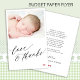 Minimalista moda elegante ducha bebé moderno elegante escritura de caligrafía con letras a mano selecta BUDGET personalizado gracias a la plantilla PAPER FLYER con su foto, texto personalizado y firma. +++++++++++++++++++++++++++++++++++ POR FAVOR LEA ESTO ANTES DE COMPRAR! Esta es una tarjeta asequible para el presupuesto impresa en un FLYER. ++++ Tenga en cuenta que el PAPEL PRESUPUESTARIO ES DELGADO - Puede actualizar para que esta tarjeta se imprima en el material de cartón ++++ ENVELOPES NO INCLUIDOS. +++ Compruebe dos veces toda la información y la ortografía del texto porque recibirá exactamente lo que ve - nadie más comprobará nada antes de imprimir. ++++ Esta tarjeta está diseñada para un tamaño de 5,5" x 8,5". En el funda usted elige otro tamaño de la tarjeta y el texto sale de la página, todo debe ser corregido antes de añadir el producto al carrito.