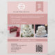 Muestra tu estudio de pasteles con elegancia y estilo. Este folleto de diseño profesional es perfecto para panaderías de alta gama, artistas de pasteles y estudios de postres boutique. Personalízalo con sus propias tres imágenes para que aparezcan sus mejores pasteles personalizados, agregue su nombre de negocio, detalles de contacto y un lema que refleje su marca. Incluye espacio para un código QR para que los clientes puedan reservar fácilmente una cita, acceder a su sitio web, formulario de pedido o medios sociales. Ideal para diseñadores de pasteles bodas, pasteles de celebración premium y negocios de pasteles modernos que valoran la calidad, el diseño y los detalles.