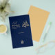 Elevate your Eid gifts with this Elegant Personalized Eid Mubarak Chocolate Bar Wrapper featuring a luxurious navy blue background and gold Islamic calligraphy design.
