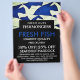 Flyer Pescado y gaviotas, pescador/mujer, mercado de pes