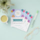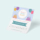 Un folleto de planificador de fiestas y eventos decorado con pasteles de cumpleaños y globos coloridos en tonos de colores felices. Incluye una lista de servicios e información de contacto. Perfecto para organizadores de eventos como fiestas de cumpleaños para niños o adultos, lanzamientos de productos, baby shower, celebraciones familiares, aniversarios de boda, despedidas de soltero, fiestas temáticas, etc.