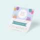 Un folleto de planificador de fiestas y eventos decorado con pasteles de cumpleaños y globos coloridos en tonos de colores felices. Incluye una lista de servicios e información de contacto. Perfecto para organizadores de eventos como fiestas de cumpleaños para niños o adultos, lanzamientos de productos, baby shower, celebraciones familiares, aniversario de bodas, despedida de soltero, fiesta temática, etc.