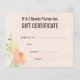 Plantilla de diseño de moda para el certificado de regalo floral para que usted rellene con su propio texto y logotipo de negocios. Escriba fácilmente el texto del ejemplo con el suyo propio y cargue el logotipo de su empresa para obtener ese acabado profesional extra! Parecerá que contrató a un diseñador gráfico de negocios personal, pero no lo hizo - así como sólo tiene que pagar una fracción del costo de estos certificados de regalo a color imprimibles. Rellene sus propios detalles de negocio sobre el texto de la plantilla. Todo el texto se puede adaptar o mover de cualquier forma que desee. Si desea seguir moviendo, redimensionando, agregando o cambiando el texto, pulse el botón "personalizar". Muchos otros diseños populares de tarjetas de vales de regalo/certificados de regalo disponibles en mi tienda de zazzle. Si estás buscando diseños especialmente encargados o alterados especialmente para tus necesidades, entonces contacta conmigo por correo zazzle.