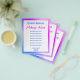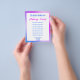 Puede editar el texto para mostrar su nombre y los servicios que ofrece. También hay texto en pantalla cerca de la parte inferior para la información de contacto. Todo el texto se puede editar o eliminar. El volante tiene un borde de gradiente morado y azul.