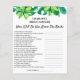 Flyer de pregunta de trivia para despedida de soltera con tema de playa tropical con arreglo de hojas tropicales y preguntas de trivia para despedida de soltera / preguntas de cuánto conoces a la novia plantilla. Un diseño perfecto para temas como playa, tropical, hawaiano o verano. Por favor, haga clic en el botón personalizar para personalizarlo con su texto. Visite amablemente mi tienda "loveyouart" para otros diseños similares.