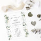 Sin sobres, versión de volante de papel. Ahorre dinero en invitaciones formales con esta invitación en papel. Informe a sus huéspedes con su programa de ceremonia de boda con sus programas de Boda Eucalyptus Glow Gold Greenery Ceremony.