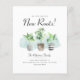 Tarjeta postal de anuncio de cambio de dirección con plantas en macetas con estilo boho acuarela y tipografía moderna y minimalista que se puede personalizar con tus datos haciendo clic en el botón "Personalizar" arriba. Puedes personalizar la tarjeta de anuncio de tu nueva dirección con más detalle e incluir un mensaje especial y dirección de correo electrónico en el reverso.