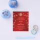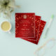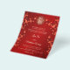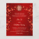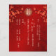 Documento de presupuesto. Esta versión tiene los nombres de los padres en el título. Ramas de flores de cerezo rojas y un símbolo de doble felicidad dorado sobre un fondo rojo. Con un texto chino tradicional al revés.