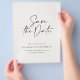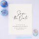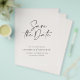 Flyer moderno y elegante de tipografía en negrita para guardar la fecha de la boda. Con tipografía moderna y elegante y diseño de fondo a rayas. Los colores se pueden personalizar.