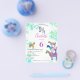 Una linda invitación de cumpleaños número 6 para niños con cabras de granja y cabritos y cabras paradas sobre cabras. Esta divertida invitación de fiesta se personaliza fácilmente para crear una invitación de fiesta única adecuada para niños y adultos amantes de las cabras. Una colección de cabras coloridas y lindas en rosa, púrpura, azul, naranja, amarillo y aqua vibrantes. Ilustraciones originales de cabras psicodélicas coloridas por la artista Catherine Sweetman