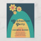 Celebra su graduación con esta fresca invitación retro de los años 70 de colores tierra vintage naranja aqua mostaza amarillo azul arco de la invitación a la fiesta de graduación. Con un diseño sencillo de margarita y plantillas fáciles de usar, este personalizado invita a que se establezca la vista para un fiesta de grad hippie de groovy fresco. Pintura original de la artista Catherine Sweetman