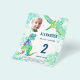 Para el niño o chica que cumple 2 años y ama los dinosaurios. Estos coloridos Roaring T Rex y volando pterodáctilo invitan a los fans de Dino a una divertida invitación al presupuesto fiesta de 2º cumpleaños. Verde azulado fondo de salpicaduras de color agua con Tyrannosaurus rex y pterodáctilo en verde azul vibrante y verde azulado Personaliza este diseño de dinos multicolor psicodélico moderno con una foto, el número de cumpleaños y los detalles del fiesta y todos están listos para un divertido cumpleaños de dinosaurios con temática de dinosaurio. Todas las especies de dinosaurios son bienvenidas. Ilustracion de arte original de Catherine Sweetman