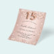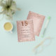 Tenga en cuenta que esta invitación está en papel de volante y es muy delgada. Los sobres no están incluidos. Para invitaciones más gruesas (el mismo diseño) visite nuestra tienda. Para una elegante Quinceañera, fiesta de cumpleaños número 15. Fondo subió de gradiente dorado. Decorado con rosa de oro falso polvo purpurina. Personalice y agregue un nombre y detalles del fiesta. El nombre se escribe con un guión de estilo con letras a mano. El número 15 se escribe con un tipo de letra de estilo globo.