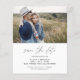 Boda presupuestal Guardar las tarjetas de fecha que tienen una foto en la parte delantera y trasera (dos fotos). Las tarjetas Save the Date contienen una moderna tipografía de escritura cursiva con letras a mano que son elegantes, simples y modernas para usar después de la minimalista celebración del día de la boda.