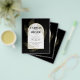 Presentamos un boda de corbata negra suave y formal con colores negro y dorado adornados con delicadas hojas de esqueleto dorado sobre los bordes de un marco arqueado. Este diseño es parte de una colección de coordinación e incluye artículos como tarjetas RSVP, guardar las fechas, invitaciones, signos de bienvenida, pegatinas, servilletas, programas, tarjetas de número de mesa, bolsos de favores, menús y etiquetas de botellas de vino, así como una variedad de tipos de tarjetas y papel para adaptarse a cualquier presupuesto. Este diseño sería adecuado para los siguientes temas bodas: bodas temáticos caprichosos o románticos, bodas temáticos de otoño o otoño, bodas temáticos sobre el jardín o al aire libre, bodas de temática rústica o bohemia, bodas de cuentos de hadas o encantados, bodas de temática vintage o chic shabby, bodas clásicos o atemporales, elegantes o de lujo.