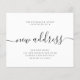 Anuncio de cambio de domicilio elegante minimalista simple en negro y blanco con letra manuscrita en caligrafía PRESUPUESTO ACCESIBLE en PAPEL VOLANTE. +++++++++ Fácil de personalizar con tu texto y nueva dirección. ++++++++++++++++++++ ¡POR FAVOR LEA ESTO ANTES DE COMPRAR! Esta es una tarjeta asequible impresa en un VOLANTE. ++++ Tenga en cuenta que EL PAPEL ECONÓMICO ES FINO - Puede actualizar para que esta tarjeta se imprima en cartulina ++++ NO SE INCLUYEN SOBRES. +++ Verifique toda la información y la ortografía de su texto porque recibirá exactamente lo que ve - nadie más verificará nada antes de imprimir. ++++ Esta tarjeta está diseñada para un tamaño de 4.5" x 5.6". En caso de que elija otro tamaño de tarjeta y el texto se salga de la página, todo deberá ser corregido antes