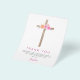 Pastel Presupuestario Rosa rosa, Naranja y morado Flores Cruzan la Acuarela Botánica Religiosa Primero (1ª) Sagrada Comunión Gracias tarjetas.