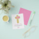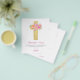 Pastel Presupuestario Rosa rosa, Naranja y morado Flores Cruzan la Acuarela Botánica Religiosa Primero (1ª) Sagrada Comunión Gracias tarjetas.