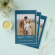 El presupuesto personaliza esta foto oscura Verde azulada y blanca simple y elegante doble cara Guardar la invitación de fecha con tu mensaje y detalles. Esta invitación a la moda incluye una moderna y elegante tipografía escrita a mano para la celebración especial del Boda a ser.