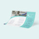 Promotional flyer that you fold yourself in clean aqua, blue, and white. Increase customer awareness with this promotional fold yourself flyer. Help customers understand what services your are offering and to get in touch and book. Ideal for domestic and commercial cleaning businesses. Fully customizable, use our logo or replace with your own. Easy to change and adjust with your own text, including contact details, QR code, and information about your cleaning services, plus space for a testimonials. All placeholder images are from pexels.com and can be used royalty free but it would be preferable to replace with your own establishment photos. Other color options and matching marketing items are available or can be created by request. Designed by www.mylittleeden.com