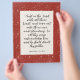 Esta impresión de campo tiene un vibrante telón de fondo rojo adornado con delicadas flores blancas y botánicos. En el corazón de la obra de arte está el inspirador versículo de la Biblia de Proverbios 3:5-6 KJV (Versión del Rey James), bellamente guionado para inspirar fuerza y tranquilidad. Ideal para un acogedor espacio vital, un sereno rincón de oración, material de estudio de la biblia, sirve como recordatorio diario de orientación y apoyo divino.