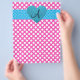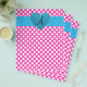 Puntos de lunares rosa y blanco fondo con corazón de purpurina azul falso y franja de lunares azules y blancos y cambio de letra de monograma a cualquier letra a,b,c,d,e,f,g,h,i,j,k,l,m,n,o,p,q,r,s,t,u,v,w,x,y,z